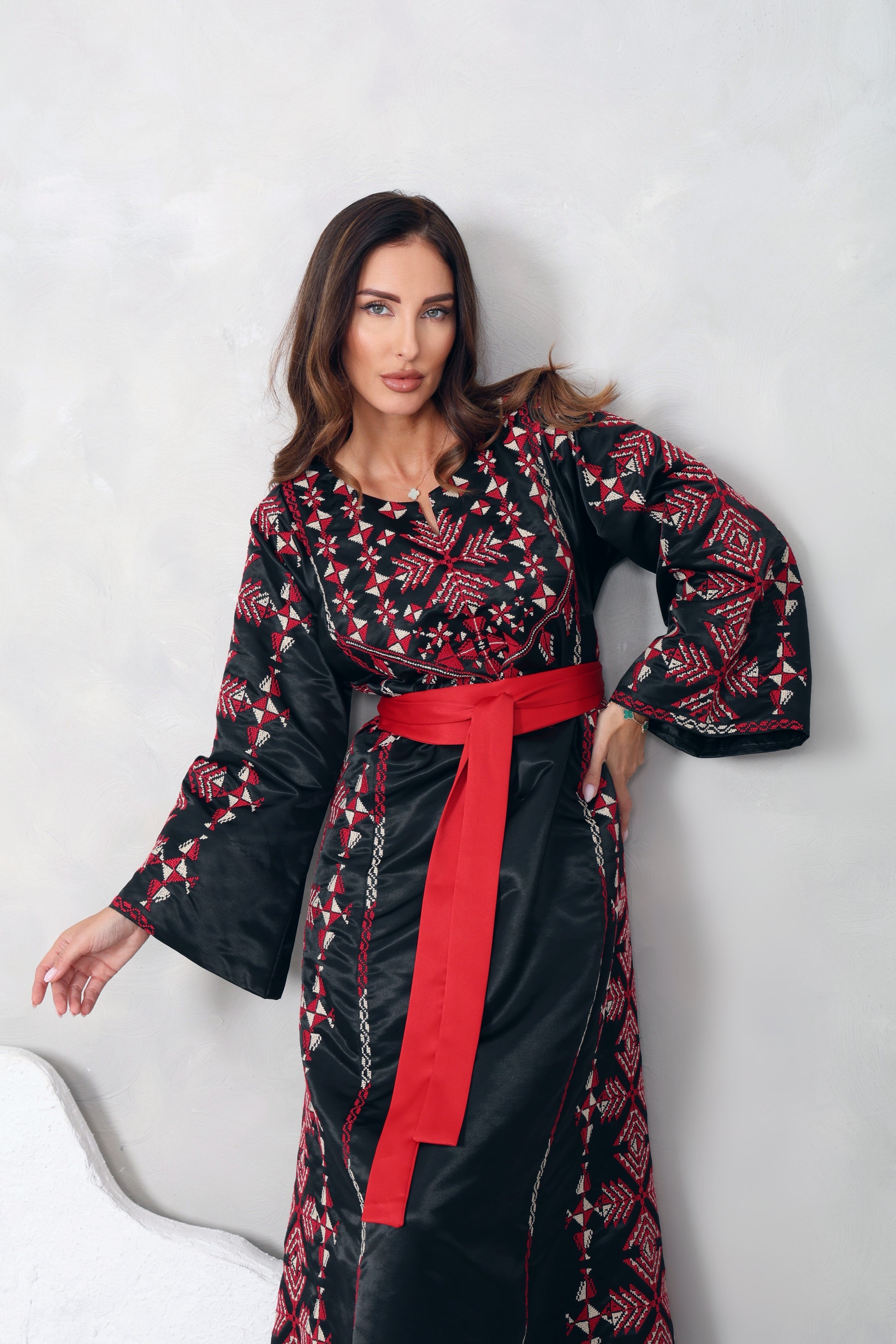 Black & Red Hand Embroidered Thobe